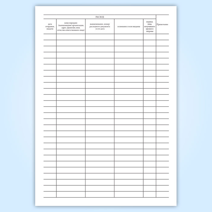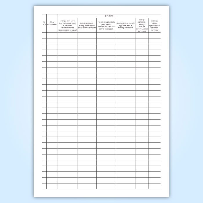 Книга учета наличия и движения поступающего, хранящегося и выдаваемого (проданного) оружия и патронов