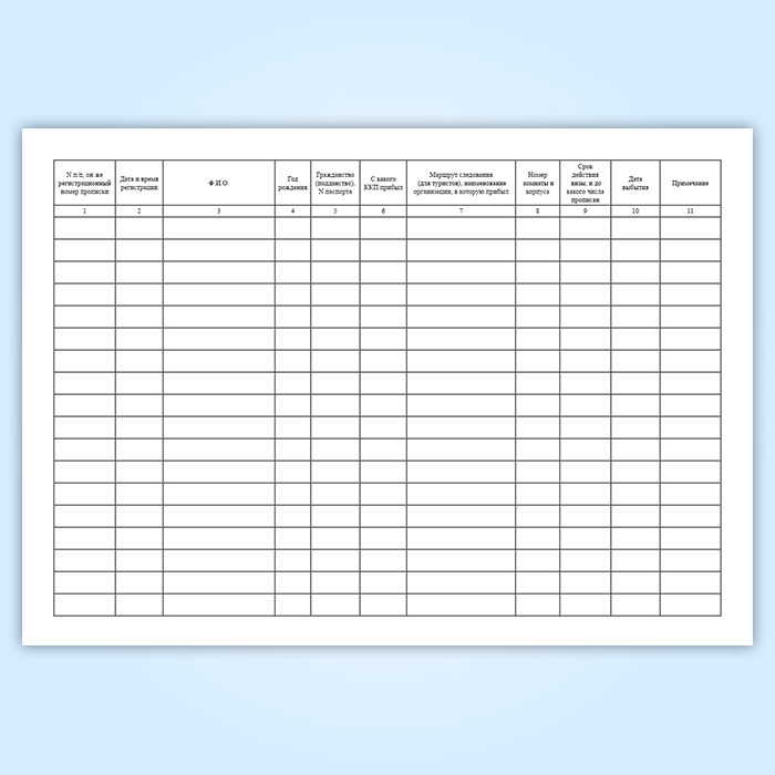 Для регистрации иностранных граждан используют журнал, который заполняется дежурным администратором или работником бюро обслуживания на основании паспорта и визы.