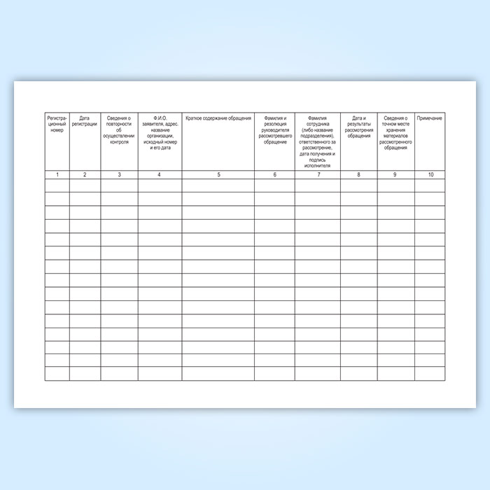 Данная форма журнала соответствует Приложению №4 к Приказу МВД РФ от 22.09.2006 N 750 (ред. от 27.08.2010) "Об утверждении Инструкции по работе с обращениями граждан в системе МВД России"