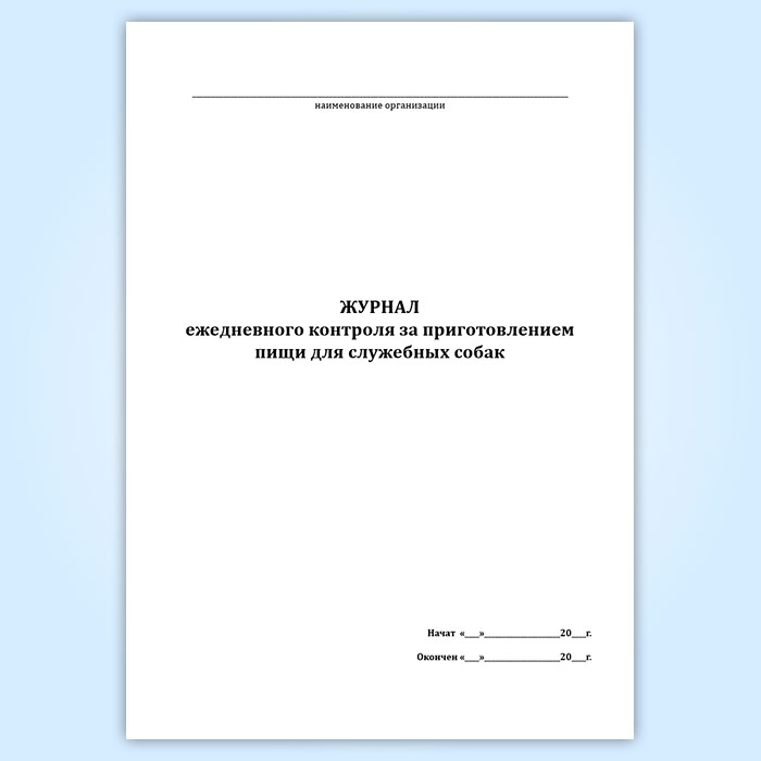 Журнал ежедневного контроля за приготовлением пищи для служебных собак