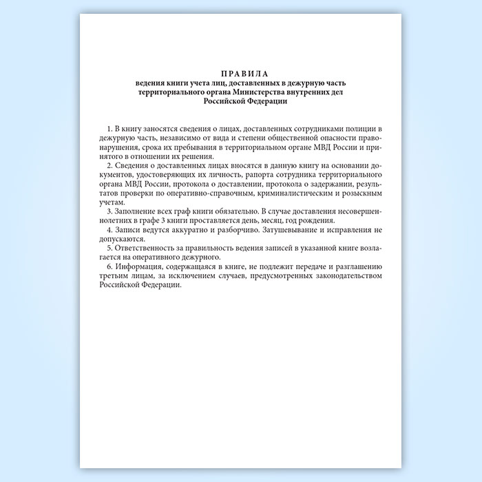 Правила ведения книги учета лиц, доставленных в дежурную часть территориального органа Министерства внутренних дел Российской Федерации: