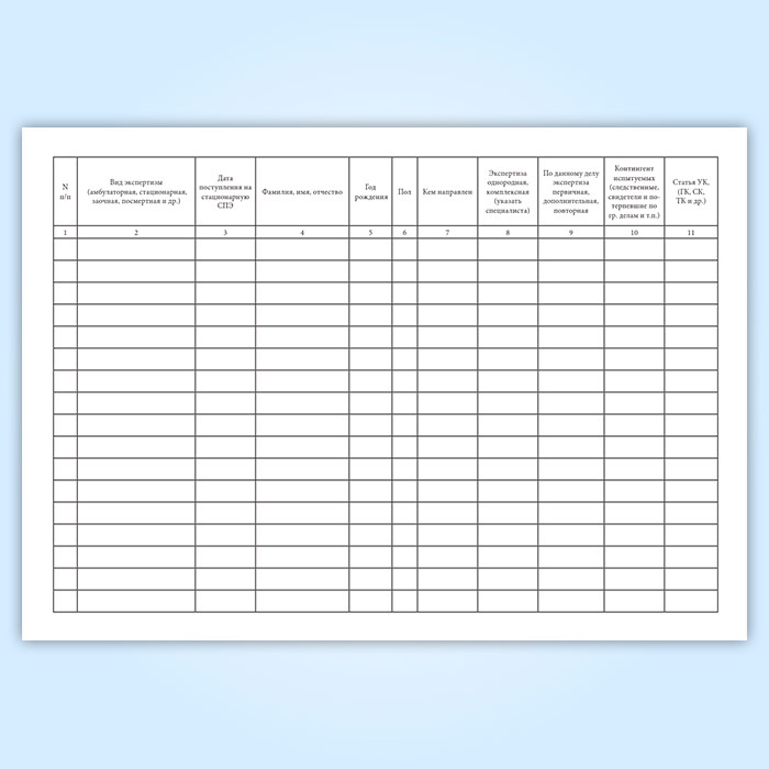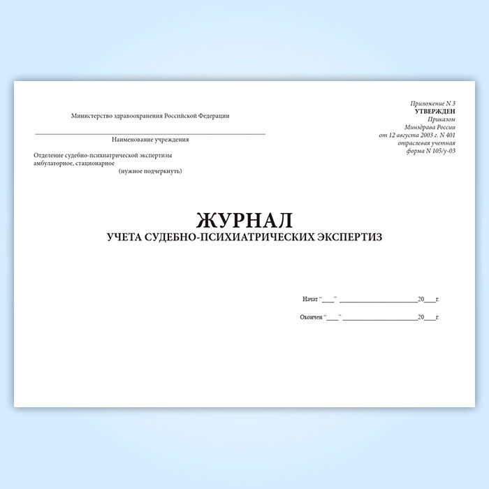 Журнал учета судебно-психиатрических экспертиз (форма 105/у-03)