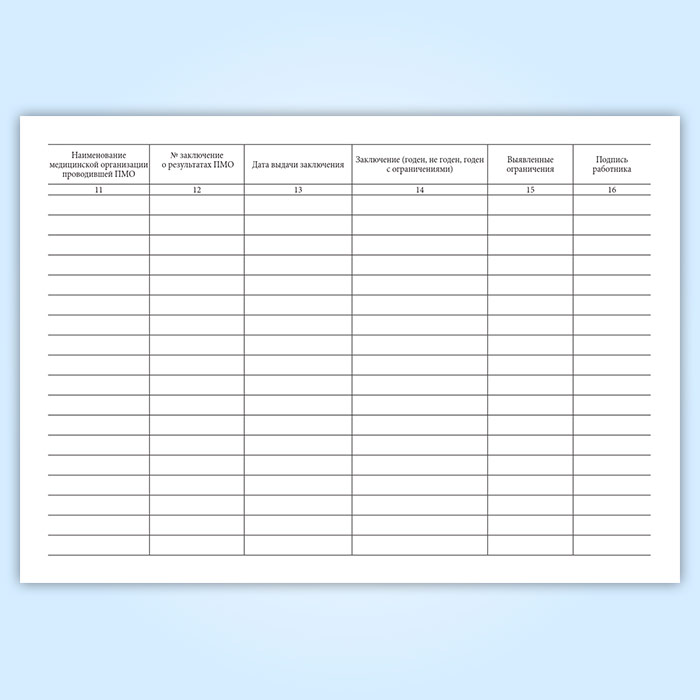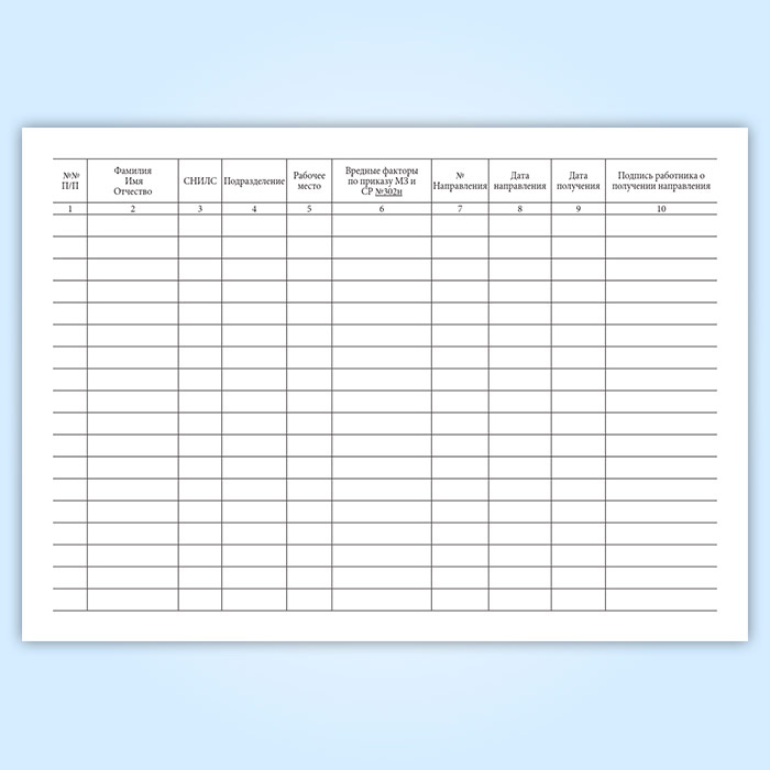 Журнал учета направлений на ПМО и заключений о профпригодности