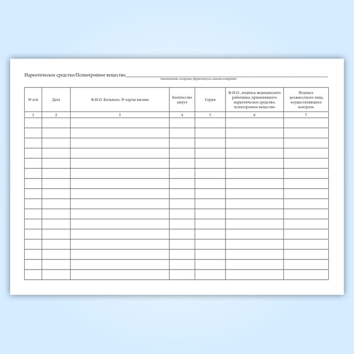 Журнал регистрации операций, связанных с оборотом наркотических средств и психотропных веществ, старшего по бригаде медицинского работника имеет графы: