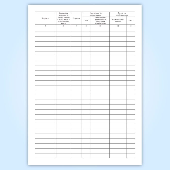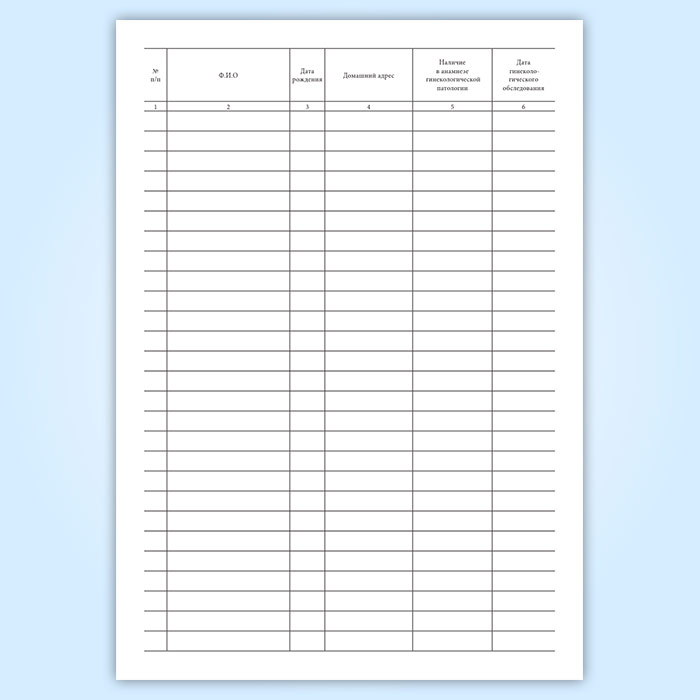 Журнал учета цитологического скрининга женщин по выявлению патологии шейки матки