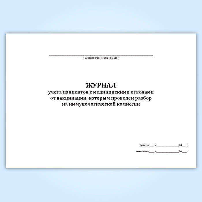 Журнал учета пациентов с медицинскими отводами от вакцинации, которым проведен разбор на иммунологической комиссии