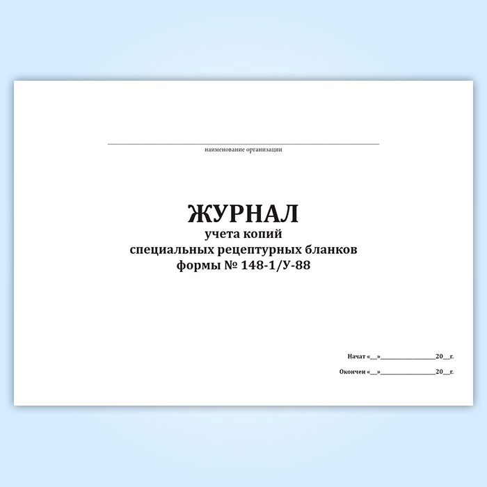 Журнал учета копий специальных рецептурных бланков формы № 148-1/У-88