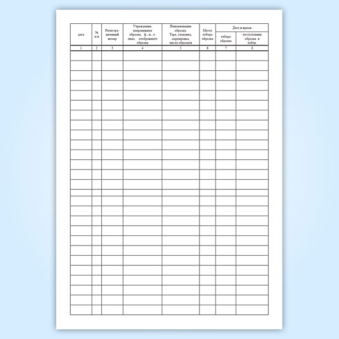 Журнал регистрации санитарно-микробиологических и санитарно-гельминтологических исследований (Форма 379-у) имеет графы: