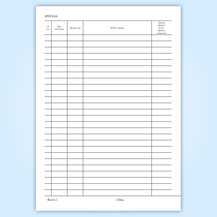 Журнал регистрации замороженной эритроцитной массы (форма 434/у-П1)