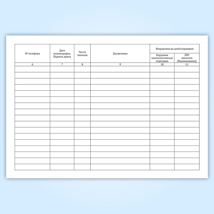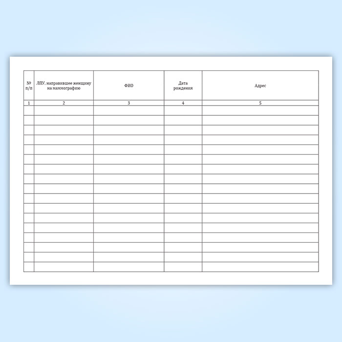 Журнал регистрации скринингового маммографического обследования женщин 40-60 лет