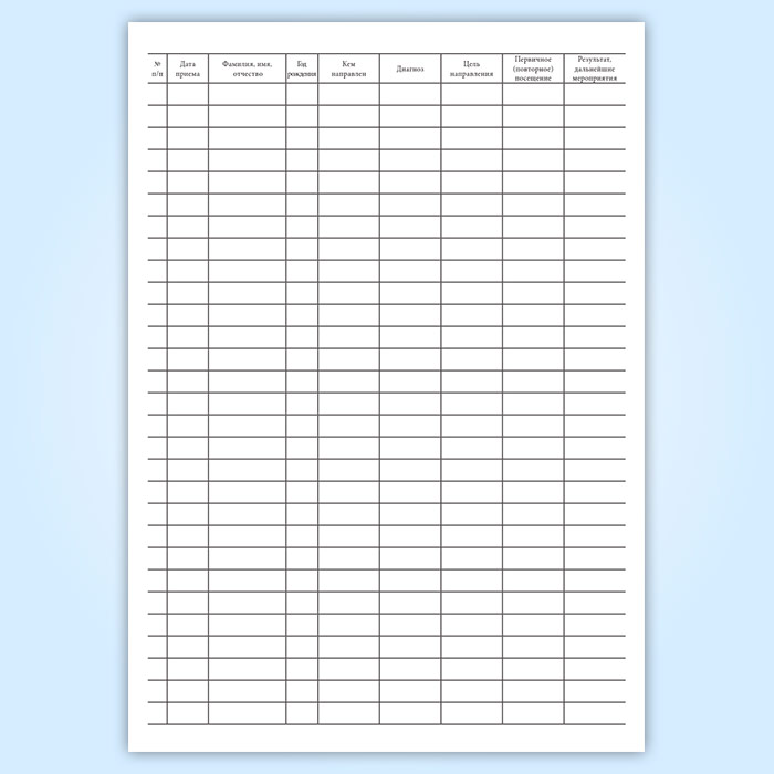 Журнал регистрации пациентов медико-психологического кабинета имеет графы: