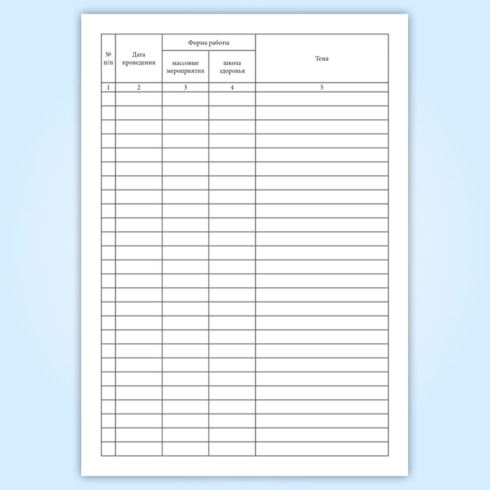 См. также: Журнал учета работы ЛПУ по медицинской профилактике (форма № 035/-02)