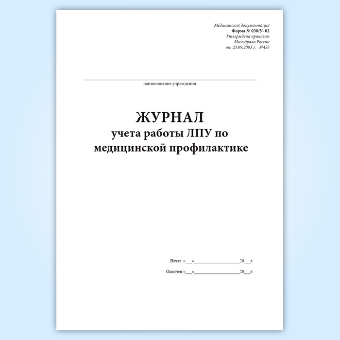Журнал учета работы ЛПУ по медицинской профилактике (форма 038у-02)
