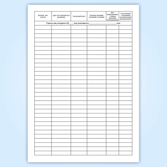 Список лиц, которым в 20_____ году исполняется _____________________________ года