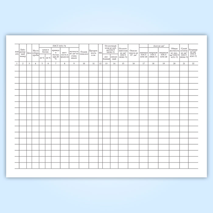 Журнал учета результатов исследований питьевой воды централизованного и нецентрализованного водоснабжения (форма 326-у)