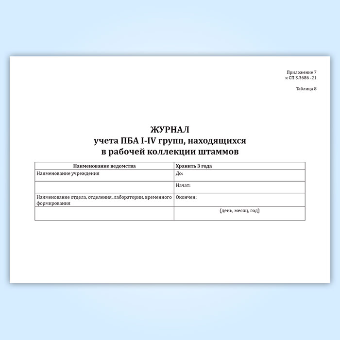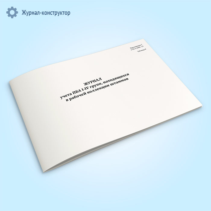 Учет ПБА I-IV групп, находящихся в рабочих коллекциях штаммов и числящихся за конкретным сотрудником, осуществляется в журнале.