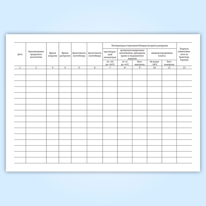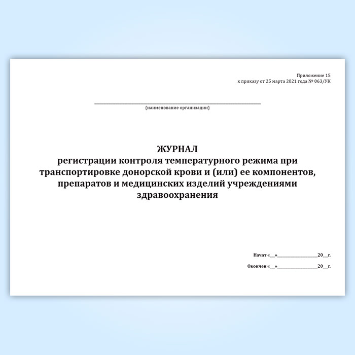 Журнал регистрации контроля температурного режима при транспортировке донорской крови и (или) ее компонентов, препаратов и медицинских изделий учреждениями здравоохранения