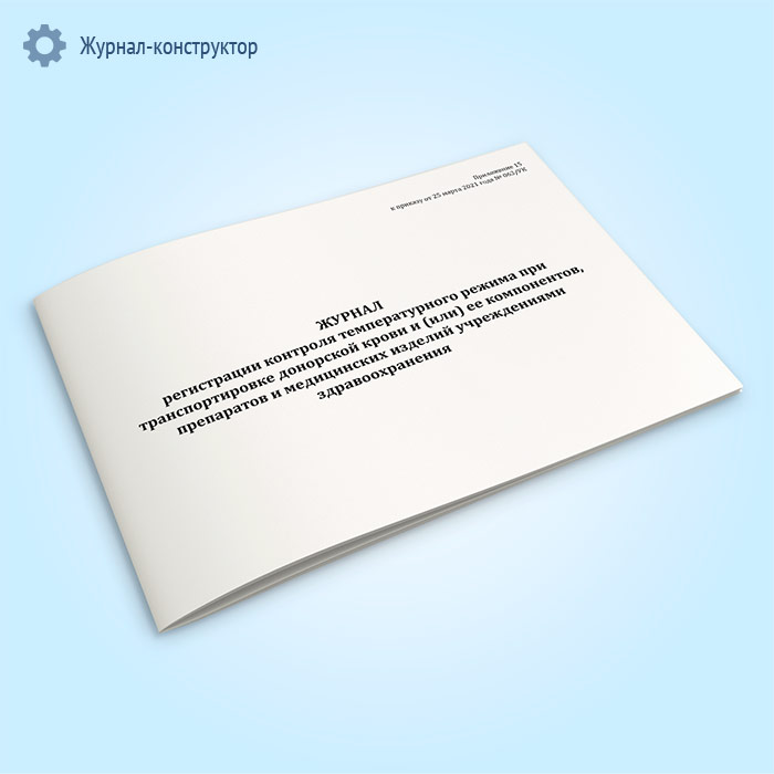 Результаты контроля температурного режима при транспортировке донорской крови и (или) ее компонентов, препаратов и медицинских изделий учреждениями здравоохранения регистрируют в журнале.