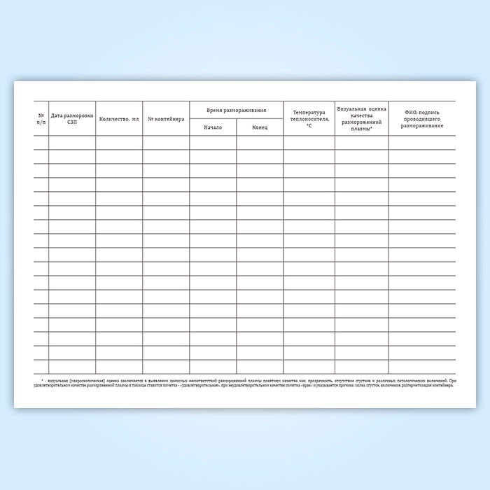 Графы журнала регистрации условий процесса размораживания СЗП: