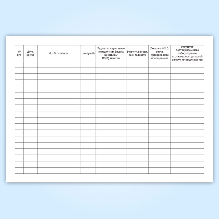 Журнал регистрации первичного определения группы крови
