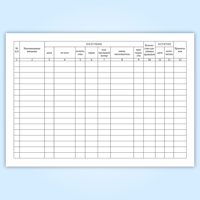 Журнал учета поступления и расхода бакпрепаратов (вакцин)