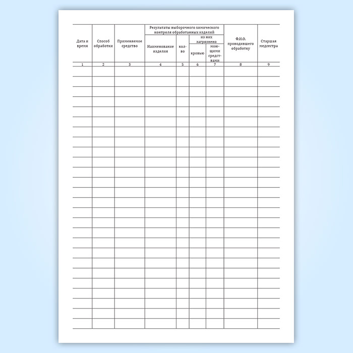 Контроль качества предстерилизационной обработки проводят путем постановки азопирамовой, амидопириновой проб. Результаты контроля учитывают в специальном журнале.
