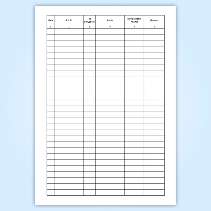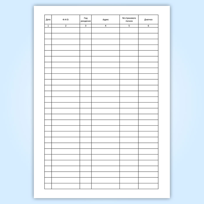 Графы журнала регистрации флюорографии: