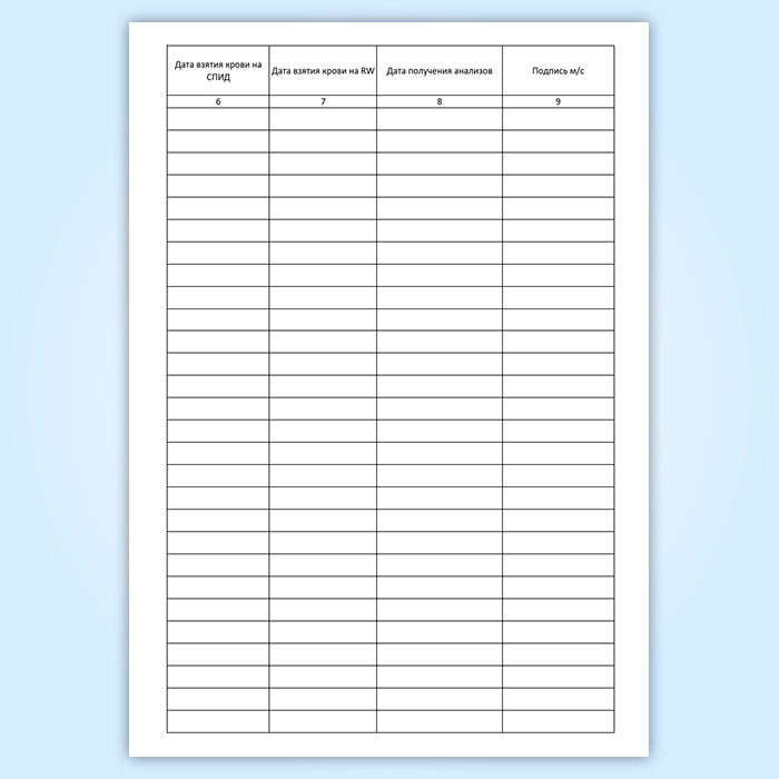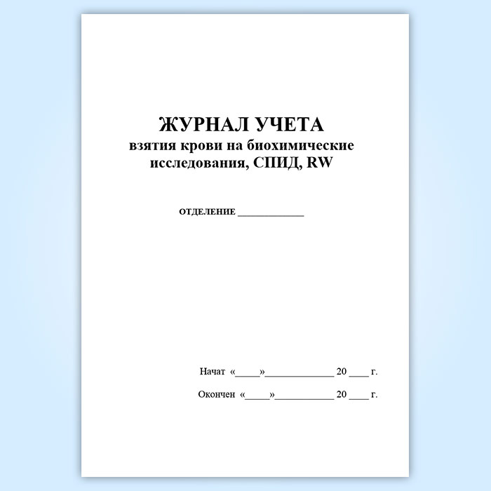 Журнал учета взятия крови на биохимические исследования, СПИД, RW