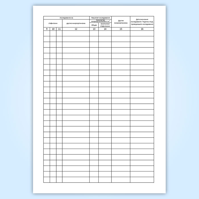 Рабочий журнал микробиологического исследования воздуха (форма 380/у)