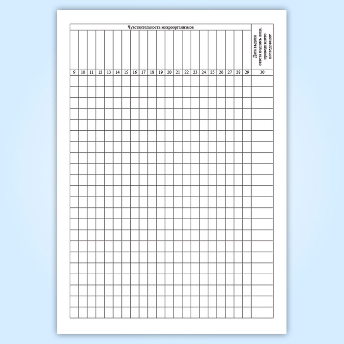 Для записи результатов микробиологического исследования и определение чувствительности выделенных культур к химио-терапевтическим препаратам используют бланк Результат микробиологического исследования и определение чувствительности выделенных культур к химио-терапевтическим препаратам (Форма 240/у).