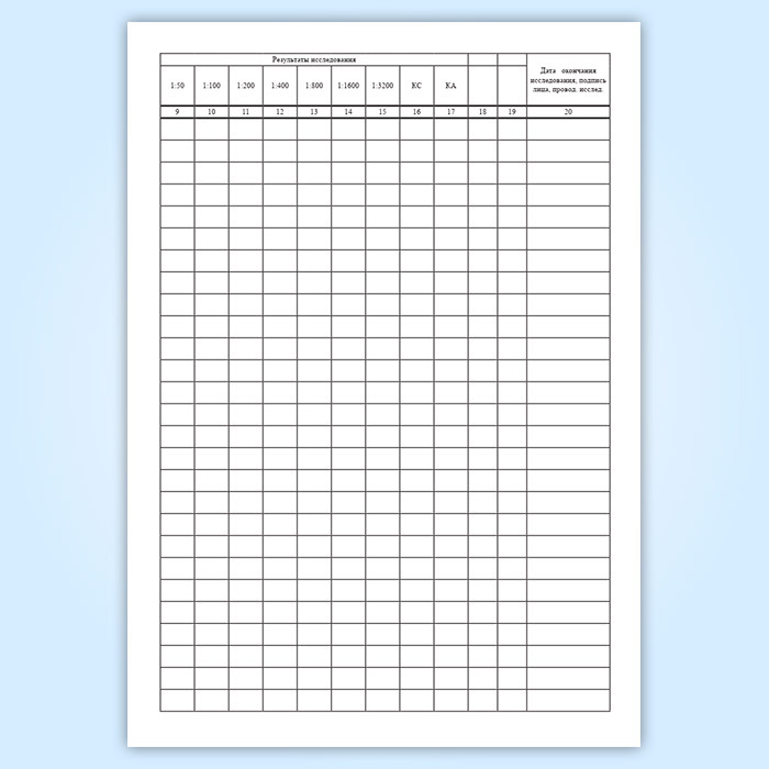 Журнал регистрации серологических исследований (форма 259/у)