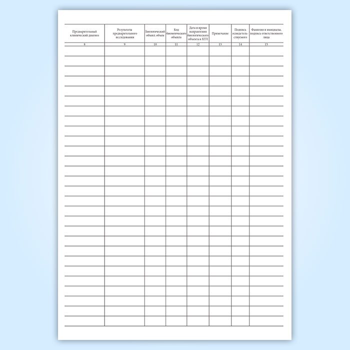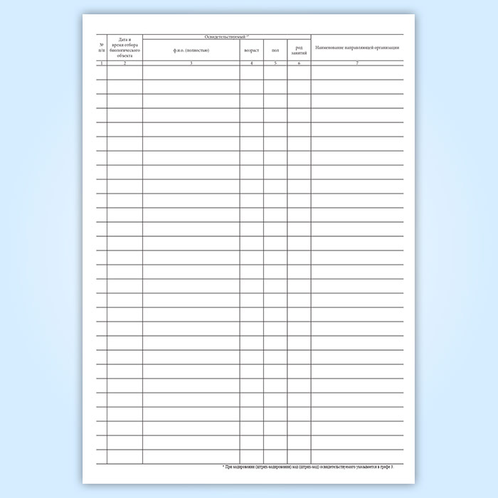Журнал регистрации отбора биологических объектов (форма 450у-06)