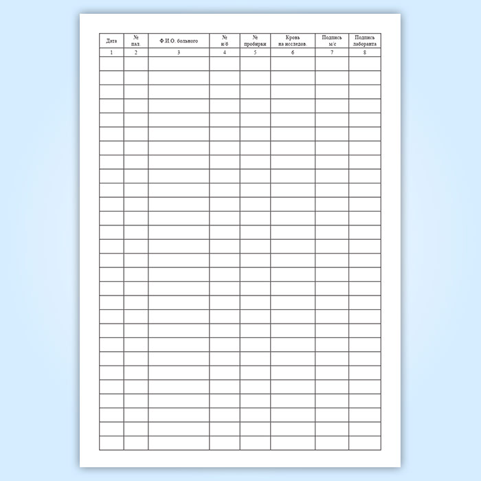 В медицинских лабораториях учет взятия крови на общий анализ ведут с помощью специального журнала.