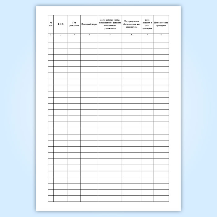 Журнал регистрации обследуемых на возбудителей паразитарных заболеваний (форма 365-у)