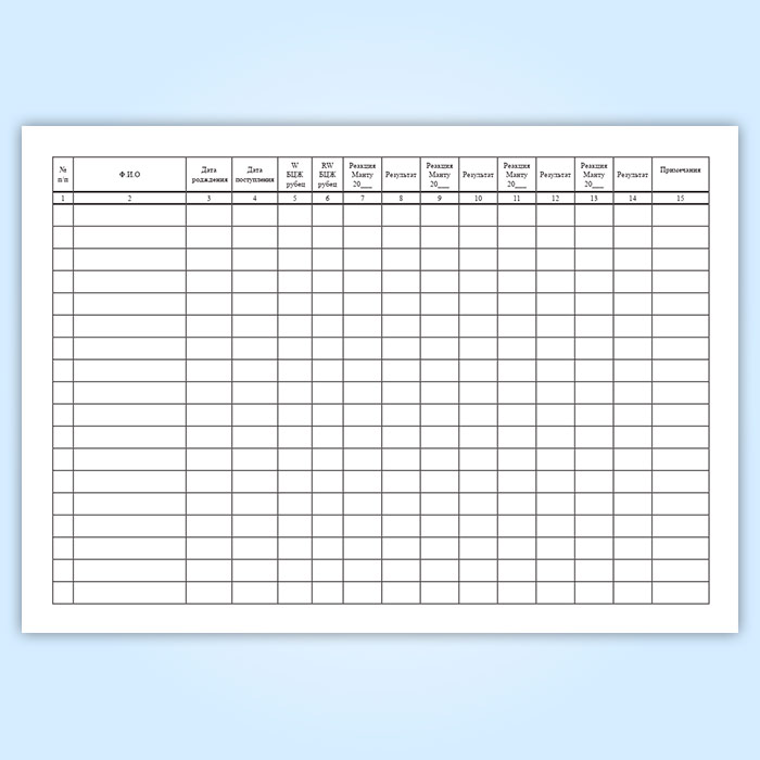 При проведени туберкулинодиагностики все данные вносят в журнал туберкулинодиагностики.