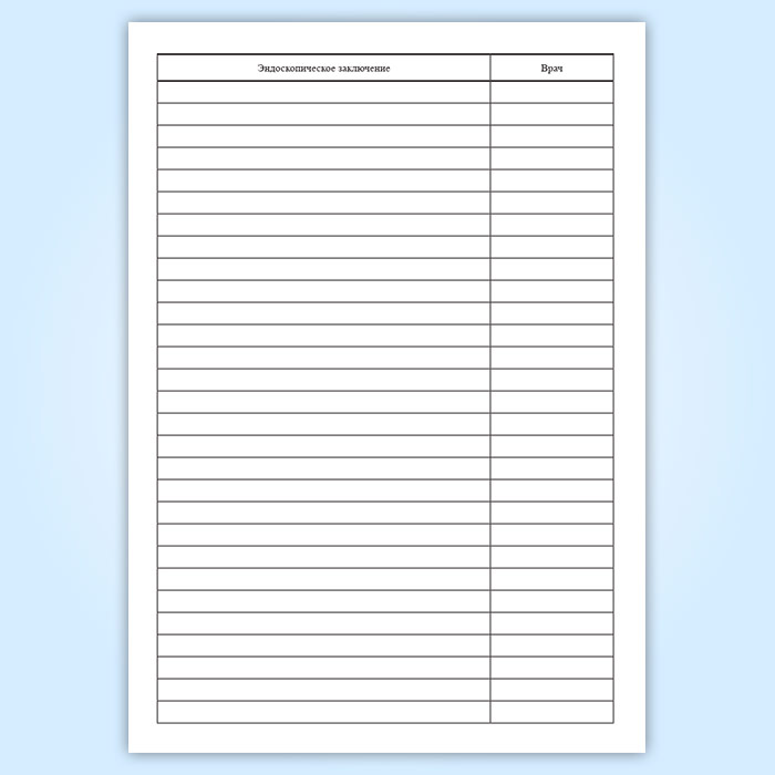 Для регистрации эндоскопических исследований в медицинских учреждениях используют форму журнала регистрации эндоскопических исследований, который имеет графы: