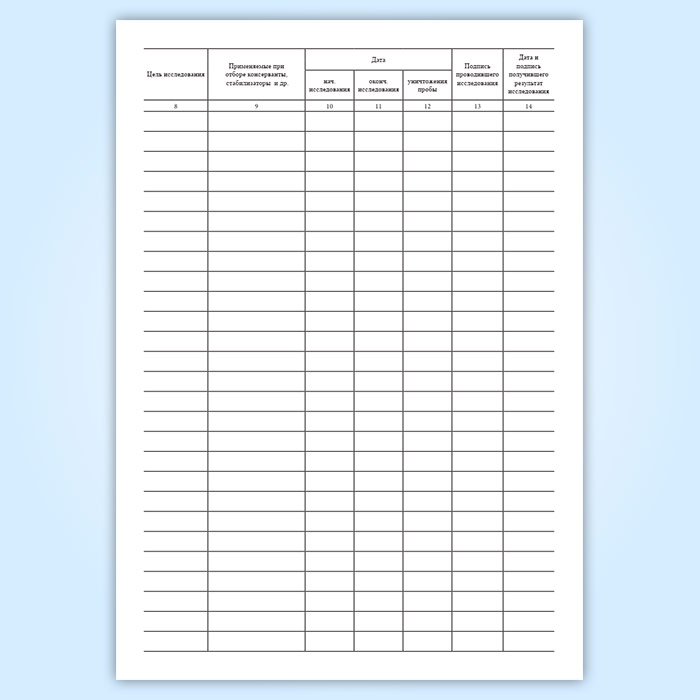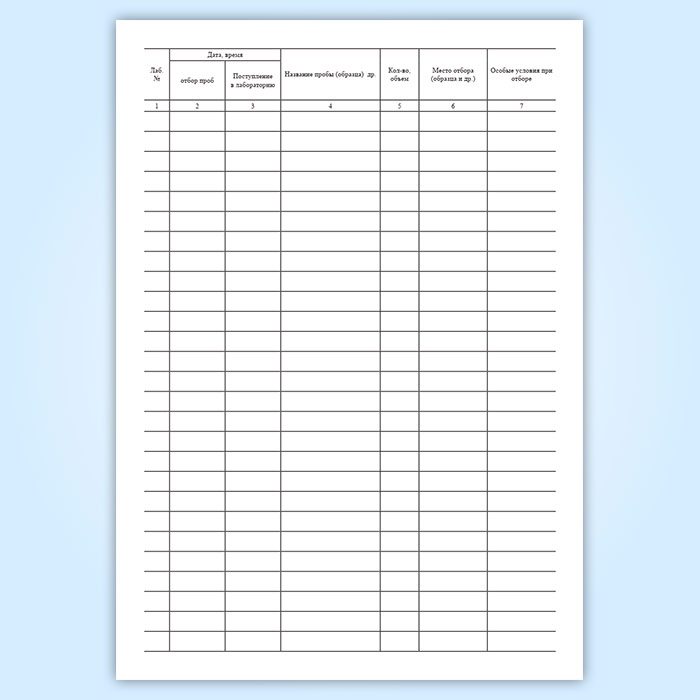 Журнал регистрации проб и выдачи результатов исследования (Форма 322/у) имеет графы: