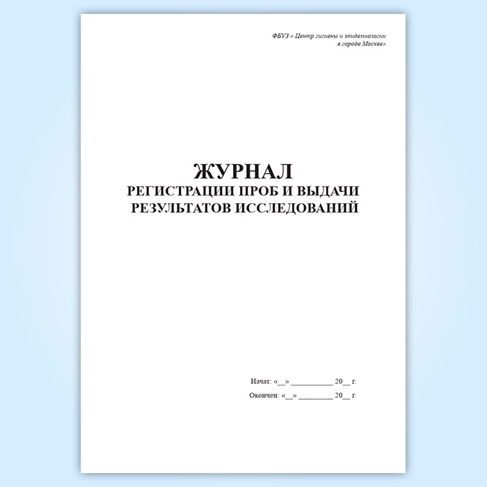 Форма журнала регистрации проб и выдачи результатов исследования (Форма 322/у) соответствует Приказу Минздрава СССР № 1030 «Об утверждении форм первичной медицинской документации учреждений здравоохранения» от 04 октября 1980 (с изменениями на 31 декабря 2002 года)