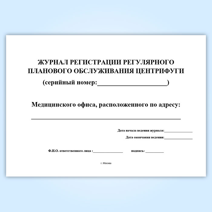 Журнал регистрации регулярного планового обслуживания центрифуги
