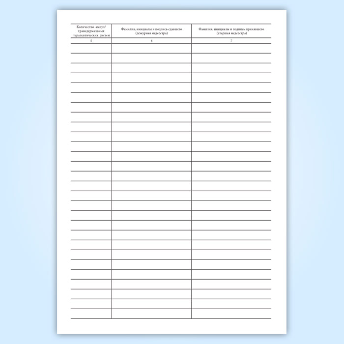 6. Фамилия, инициалы и подпись сдавшего (дежурная медсестра)