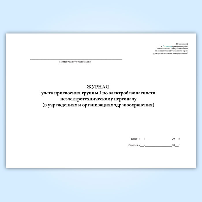 Журнал учета присвоения группы 1 по электробезопасности неэлектротехническому персоналу (в учреждениях и организациях здравоохранения)
