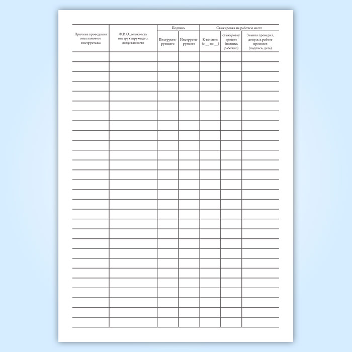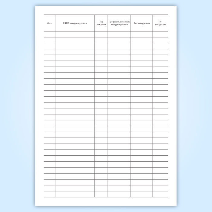 В отличие от Журнала регистрации инструктажа на рабочем месте, в данном журнале отсутствует графа № п/п.