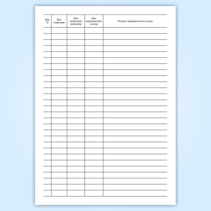 Форма журнала соответствует Приложению 9 к Приказу Департамента здравоохранения г. Москвы от 03.09.2015 N 738 "Об утверждении Регламента организации работ по обеспечению электробезопасности и форм документов, оформляемых по результатам проверки состояния и условий охраны труда".