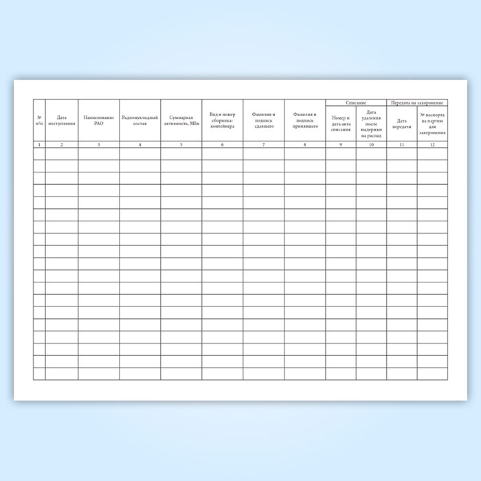 Журнал учета радиоактивных отходов (СанПиН 2.6.1.3288-15)