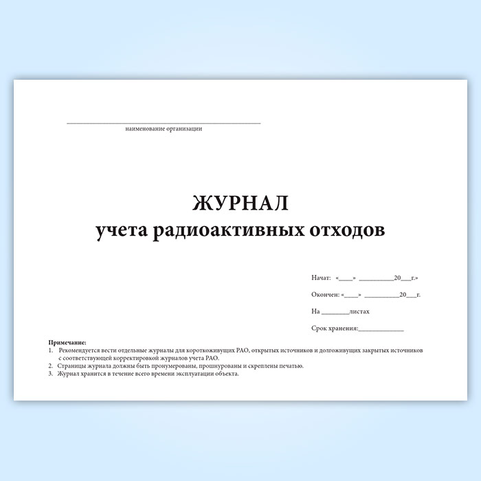 Форма данного журнала отличается от журнала учета радиоактивных отходов.