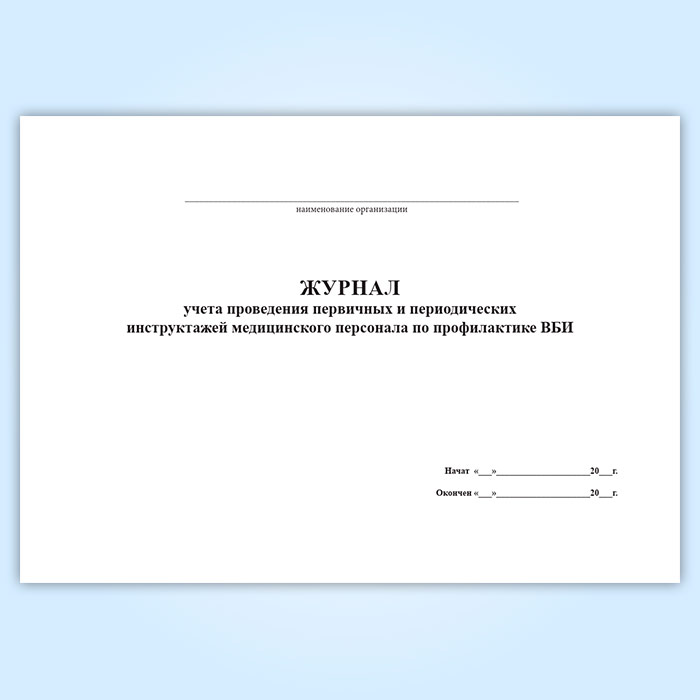 Все сотрудники ЛПУ должны пройти соответствующий инструктаж, результаты которого регистрируются в отдельном журнале учета проведения первичных и периодических инструктажей медицинского персонала по профилактике ВБИ.