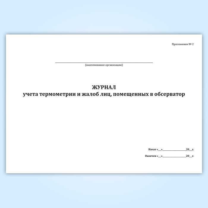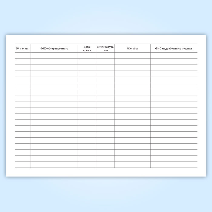 Форма журнала соответствует Приложению 2 к Рекомендациям по организации работы обсерватора для лиц, прибывших из эпидемически неблагополучной территории по новой коронавирусной инфекции (COVID-2019).