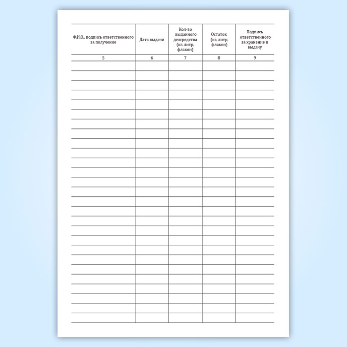 7. Кол-во выданного дезсредства (кг, литр, флакон)