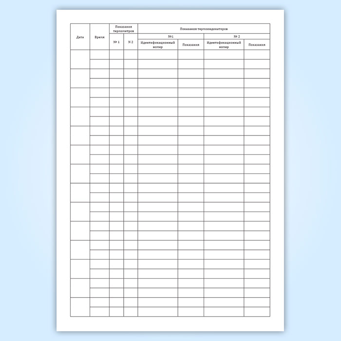 Контроль показаний каждого термометра осуществляется два раза в день (в начале и в конце рабочего дня). Показания термометров регистрируются в специальном журнале мониторинга температуры, который заполняется отдельно на каждую единицу холодильного оборудования