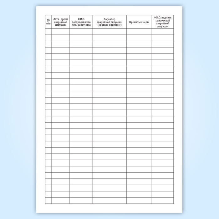 Графы журнала учета аварийных ситуаций при обращении с медицинскими отходами: